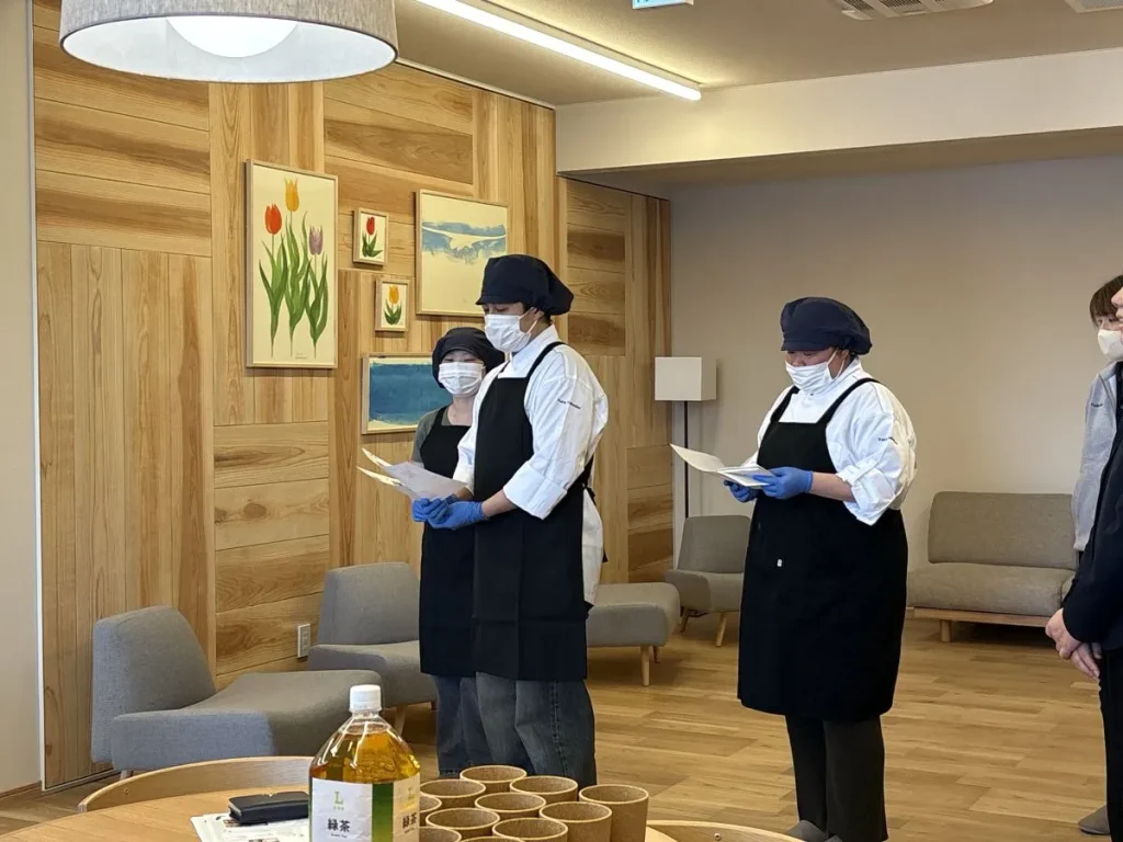 本試食会では、寮生や宿泊利用の方に提供する食事内容について、実際にご試食いただきながら、味やボリューム、バランスなどを確認しました。